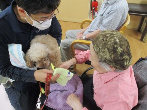 参加されたご入居者の中には、昔飼っていたペットを思い出し懐かむ方や、普段あまり笑顔の見られない方も笑顔で楽しんでいただけました。