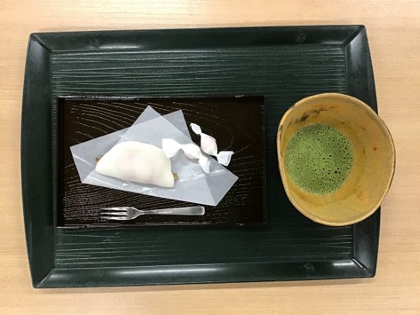 最後に花びら餅とお抹茶を召し上がっていただきました。