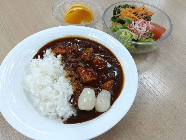 減塩の食事といえば、味気ないものというイメージが一般的ですが、減塩ルーを使用したカレーのメニューも提供しています。