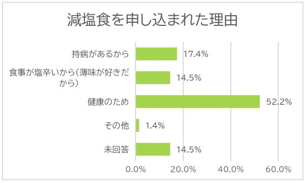 2025年11月に実施しました「食事満足度調査」では減塩食を選択された理由として「健康のため」と52.2%の方が回答され、ウェルネス意識の高まりを感じています。