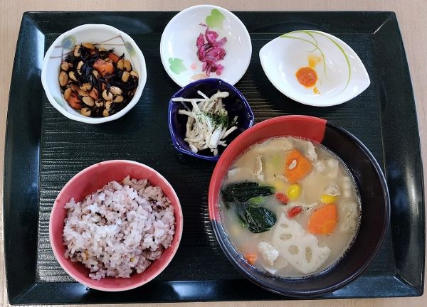 〇豚の薬膳スープ・ひじきの煮物・ごぼうサラダ・十五穀米・お漬物