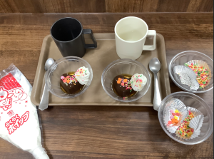 利用者の皆様ご自身でホイップクリームやカラースプレーをトッピングしていただき、