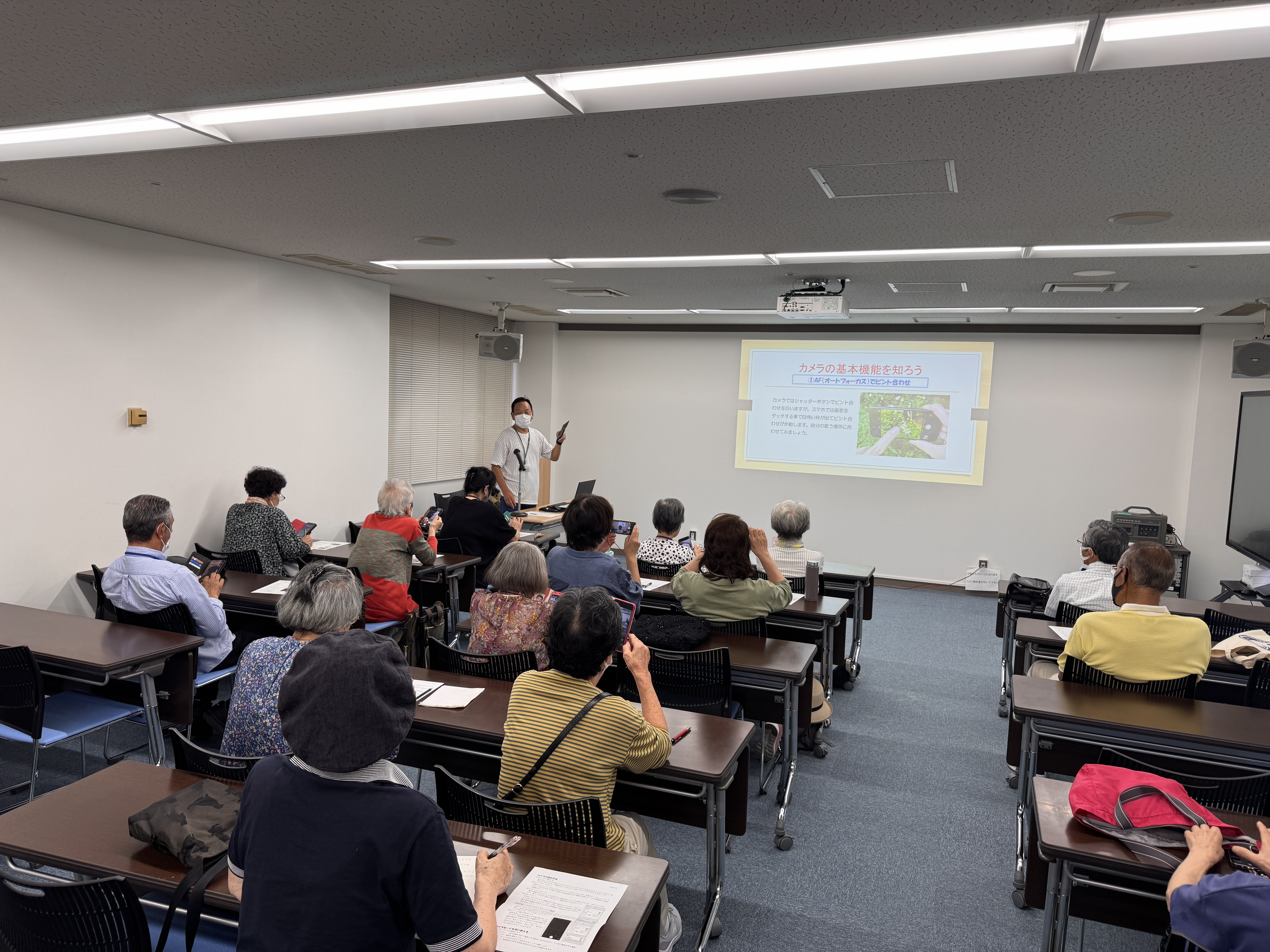 9月26日(金)、ふれあいプラザとしては初めてのスマホ写真講座を開催しました。本格的なカメラをお持ちでなくても、普段お使いのスマートフォンで、写真の魅力をもっと感じていただきたいという想いから、ふれあい写真倶楽部の兼古健悟先生(入江泰吉記念奈良市写真美術館 技術主任)にお願いし、開講していただきました。