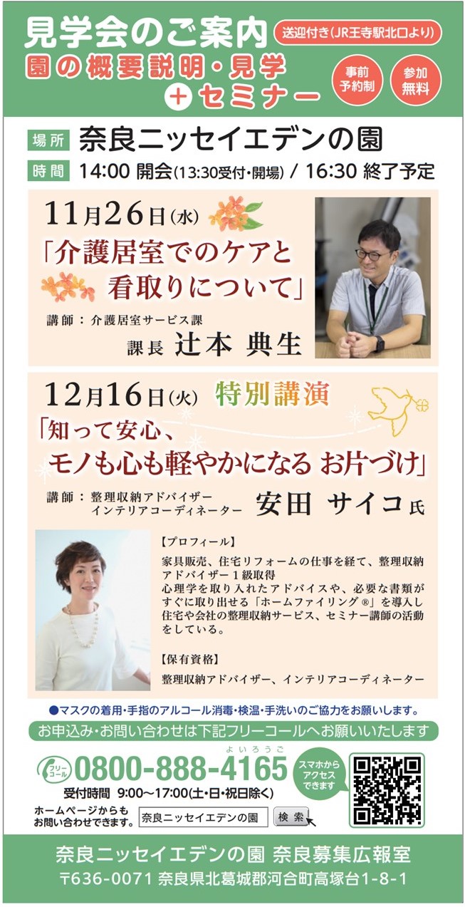 ・セミナー、個別見学へのご参加は事前のご予約が必要です。