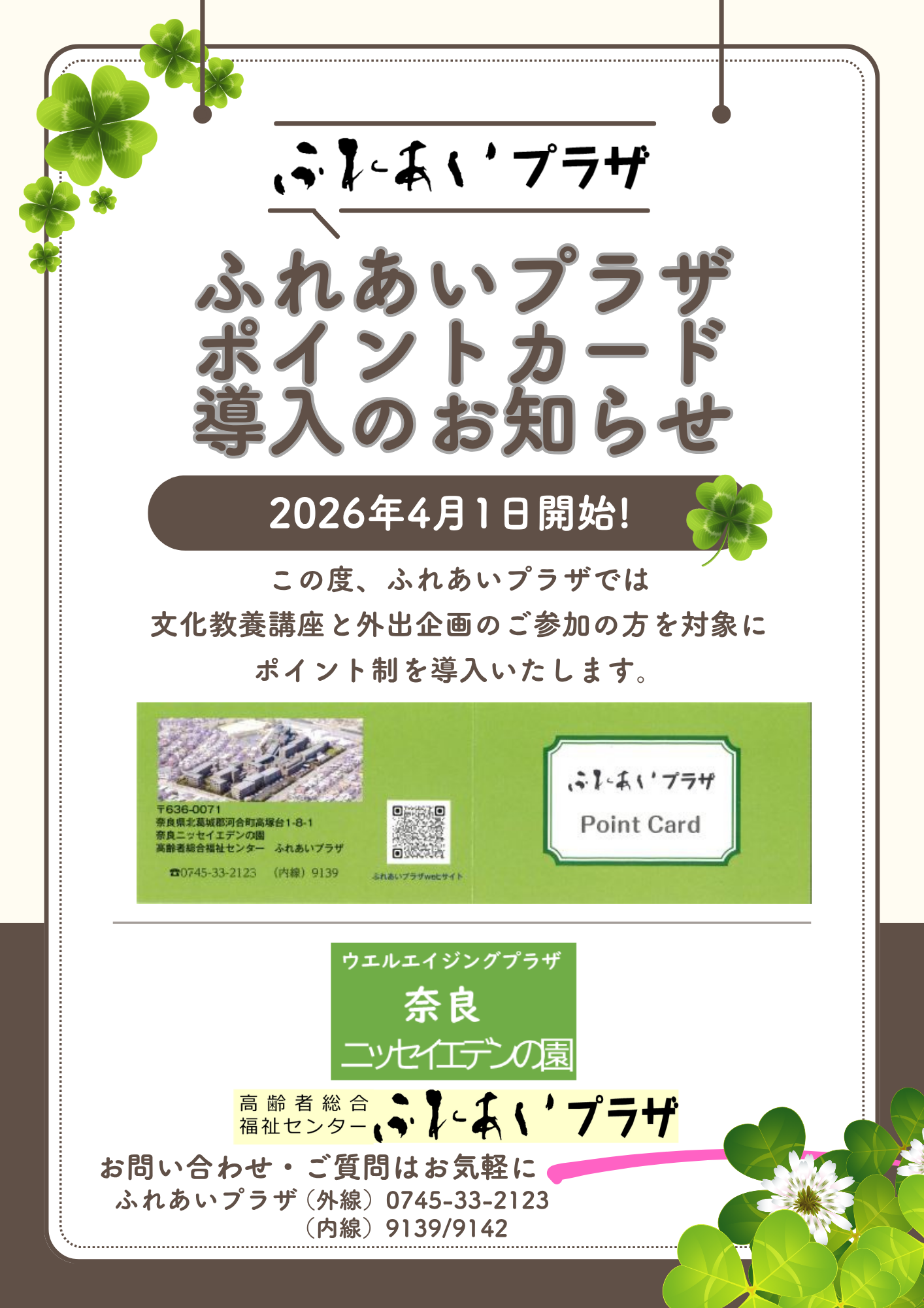 高齢者総合福祉センター ふれあいプラザでは2026年4月1日よりポイントカード制を導入することになりました。