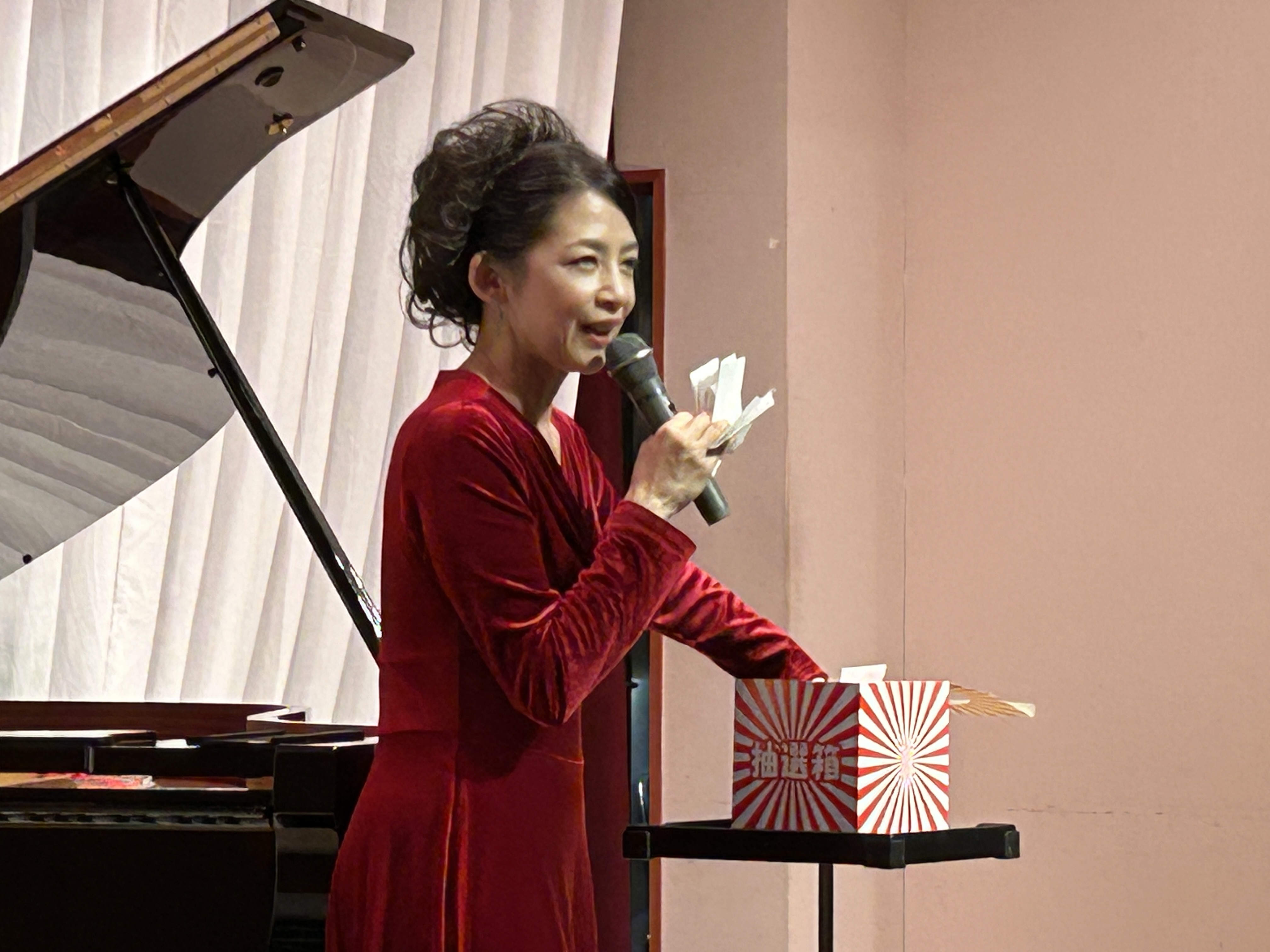 色紙やCDが当たる抽選や、身体を動かしてピアノと一緒にリズムをとるラデツキー行進曲など、会場の皆さんも参加してとても楽しいひと時を過ごしました。